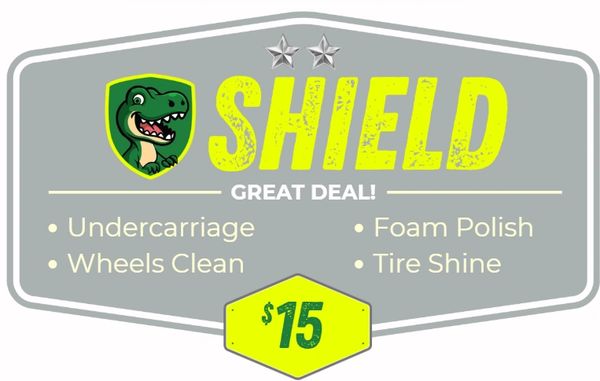 The Shield Wash includes all the benefits of the Basic and adds a superior coat for your car, starting from the bottom to the top. This wash includes Undercarriage clean, Tire Shine, Wheels Clean and Foam Polish.